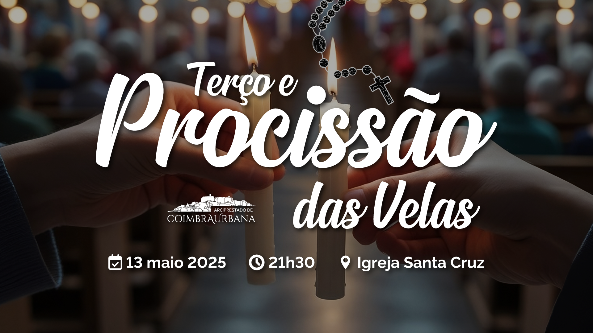 No dia 13 de maio, às 21:30, o nosso Arciprestado de Coimbra Urbana reza o terço e faz uma procissão de velas, com a imagem de Nossa Senhora de Fátima, pelas ruas da Baixa de Coimbra. É uma forma de manifestar a devoção que nós, comunidade cristã, temos à Santa Mãe de Deus, cujo “sim” generoso ao projeto de Deus Pai sempre nos inspira. Convidamos todos a estarem presentes nesta manifestação de fé e de espiritualidade.